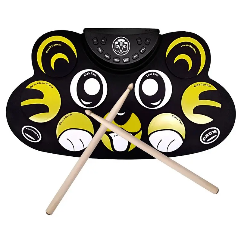 ABUO-Cartoon Holiday gift Portable Electronic Roll up Drum Pad Kit Silicon Foldable with Stick US P