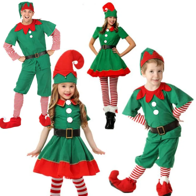 ORIGINAL Children Adults Women Men Green Elf Cosplay Costume Family Performance Costumes Party Dress Decorat