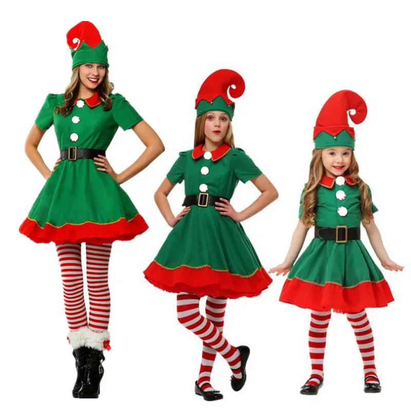 Children Adults Women Men Green Elf Cosplay Costume Family Performance Costumes Party Dress Decorat