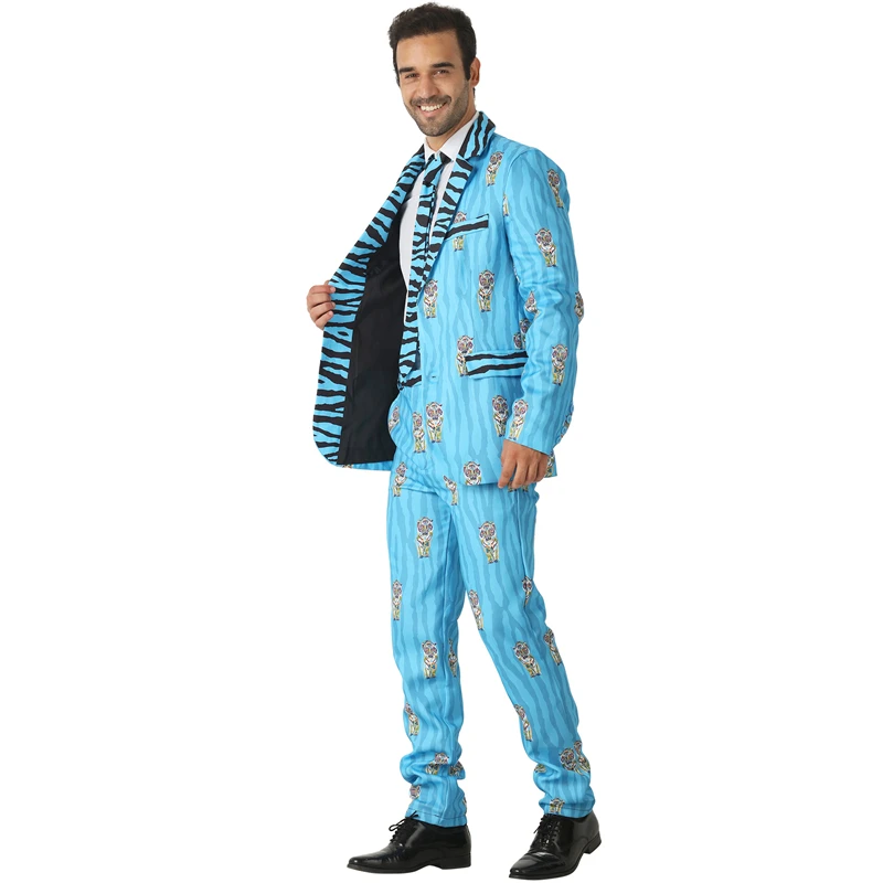 BEST QUALITY High-quality Stylish Adult Blue Wild Tiger Fancy Crazy Suit Halloween Party Costume