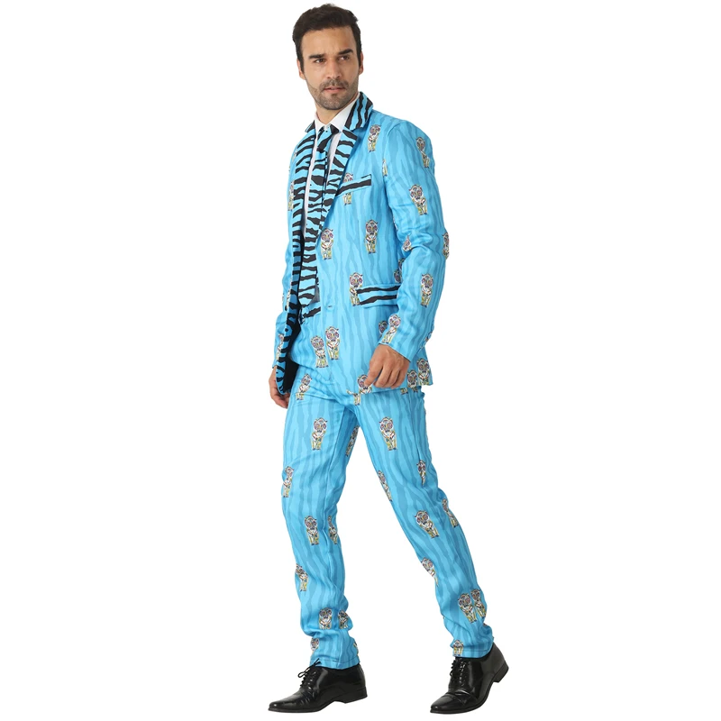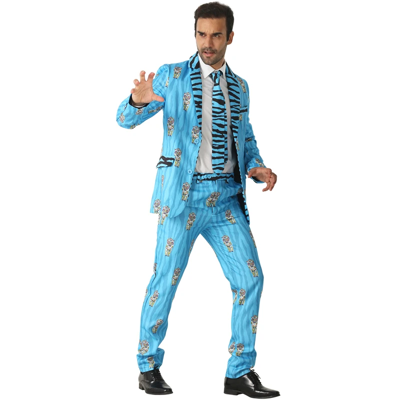 High-quality Stylish Adult Blue Wild Tiger Fancy Crazy Suit Halloween Party Costume