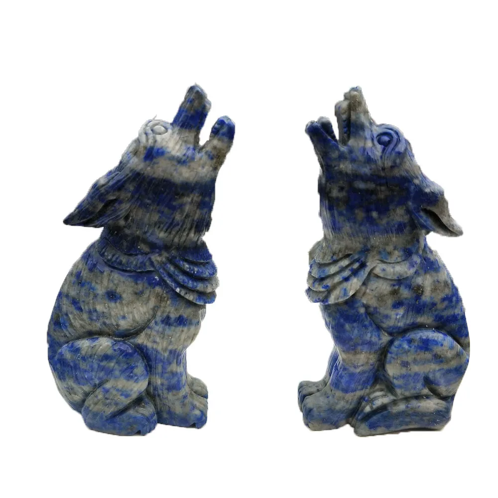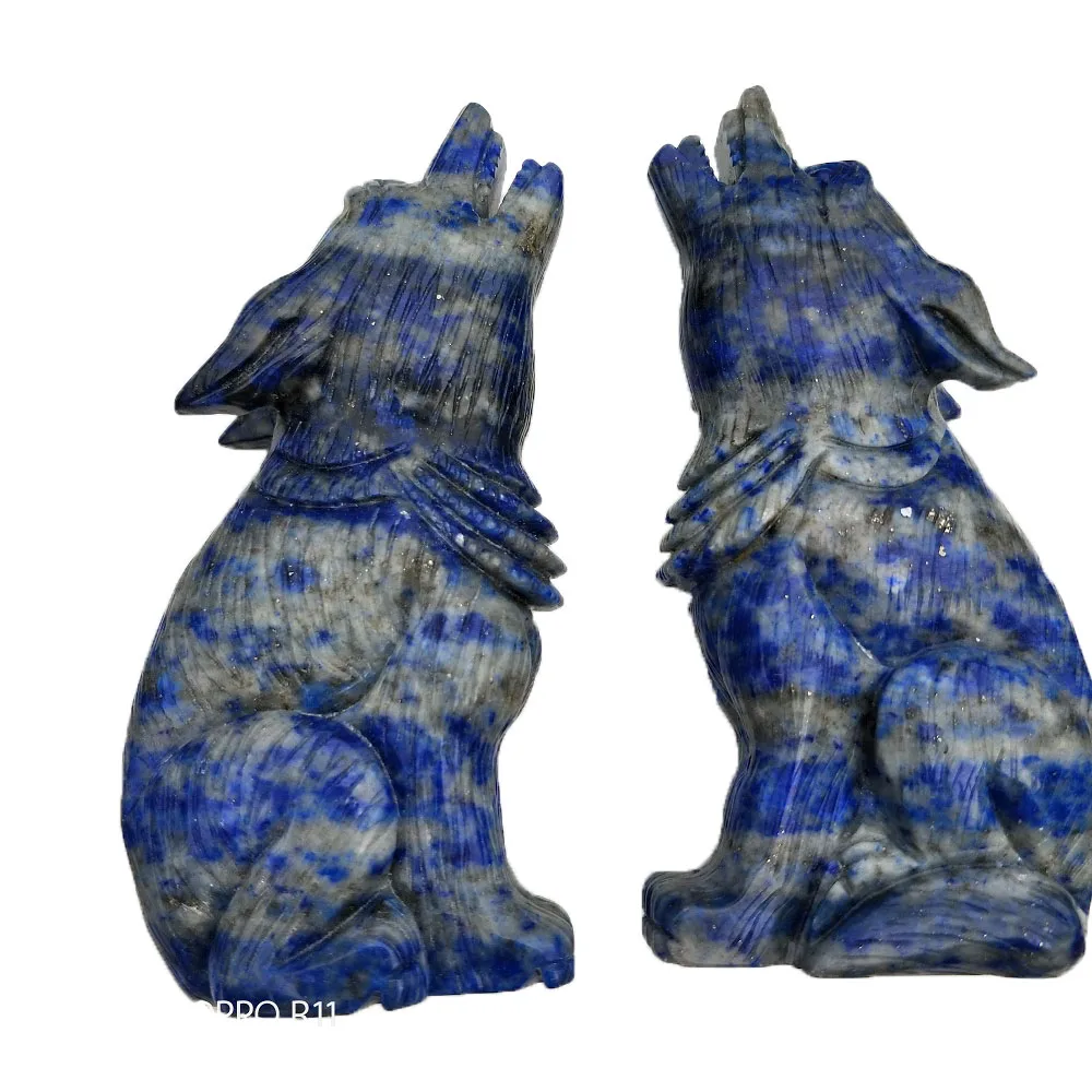Best Quality Natural Crystal carving lapis lazuli Wolf figure statue hand carved crystal healing For family or h