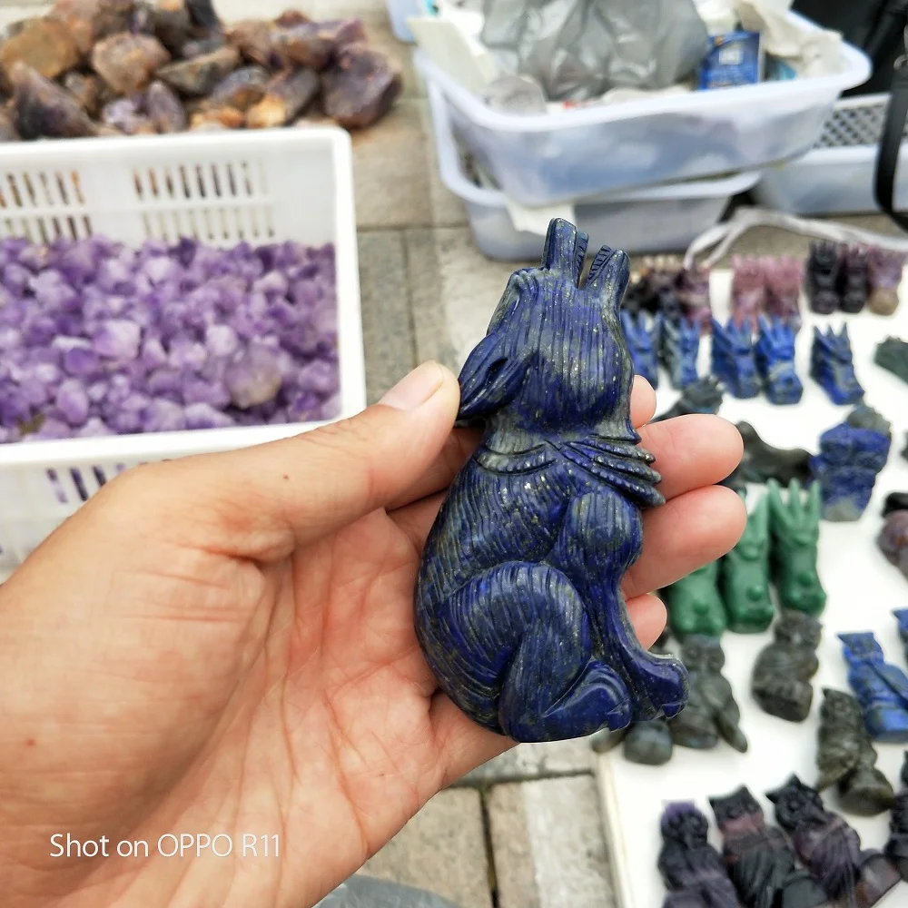 Natural Crystal carving lapis lazuli Wolf figure statue hand carved crystal healing For family or h